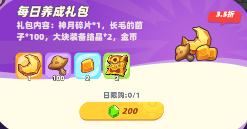該禮包中包含了神月碎片、長毛的菌子、大塊裝備結(jié)晶等重要的養(yǎng)成道具,并且是每日限購!