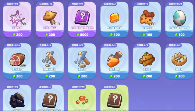 像“裝備結(jié)晶碎片”、“野獸毛皮”、“大塊裝備結(jié)晶”、“強(qiáng)韌蛛絲”、“長毛菌子”等每日限購材料