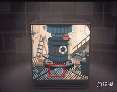 在倉庫中,你可以利用桌子上的臺(tái)燈進(jìn)行拼接,從而抬起倉庫門前地面上的井蓋,并打開立方體上部的畫面,接著,使用房間中的花籃與木板拼接,使木板落下并露出出水口閥門,這一操作還會(huì)打開立方體當(dāng)前正立面的左側(cè)畫面,然后,在左側(cè)立面的滑梯下方就可以找到這張照片,具體照片如下: