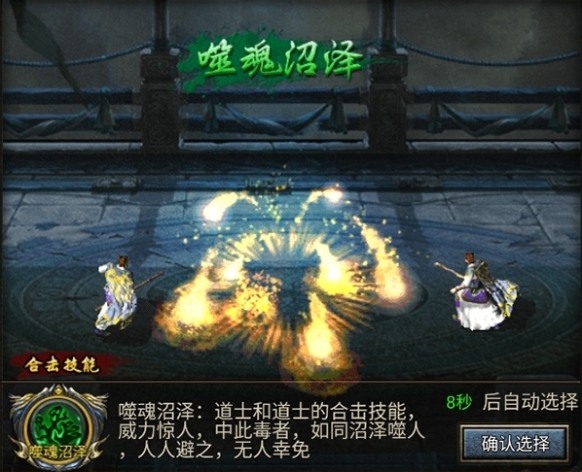 道士和道士的合擊技能,威力驚人,中此毒者,如同沼澤噬人,人人避之,無人幸免!